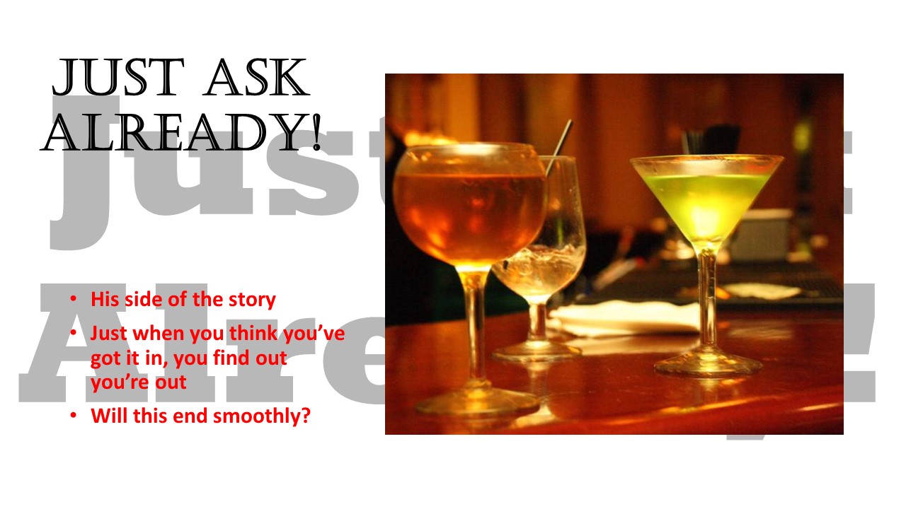 Just hanging out after work. It’s not like he was asking for a life long commitment. Just a chance to be himself and talk. That was it. Talk.