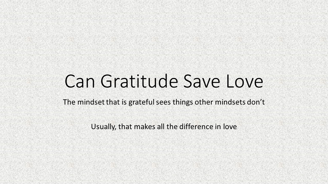 Which brings about the question of the day, can gratitude save love? Before answering that question, a quick story that’s been shared many years ago. heard it as advice being given to someone else