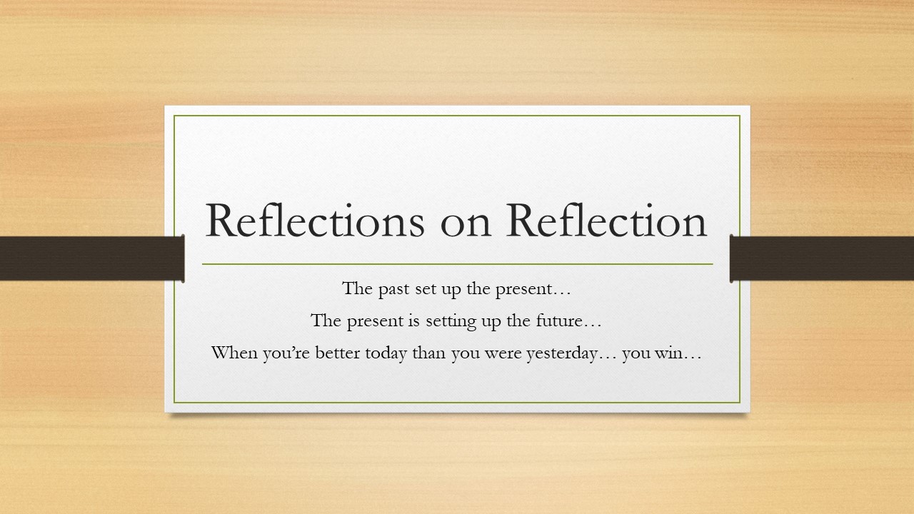 When reflecting, the means by which we live change, but it doesn’t have to define us. We shape our experiences. We define our meanings. And when we work together, we not only win, but we do create that glossy beautiful life that we own as our own.