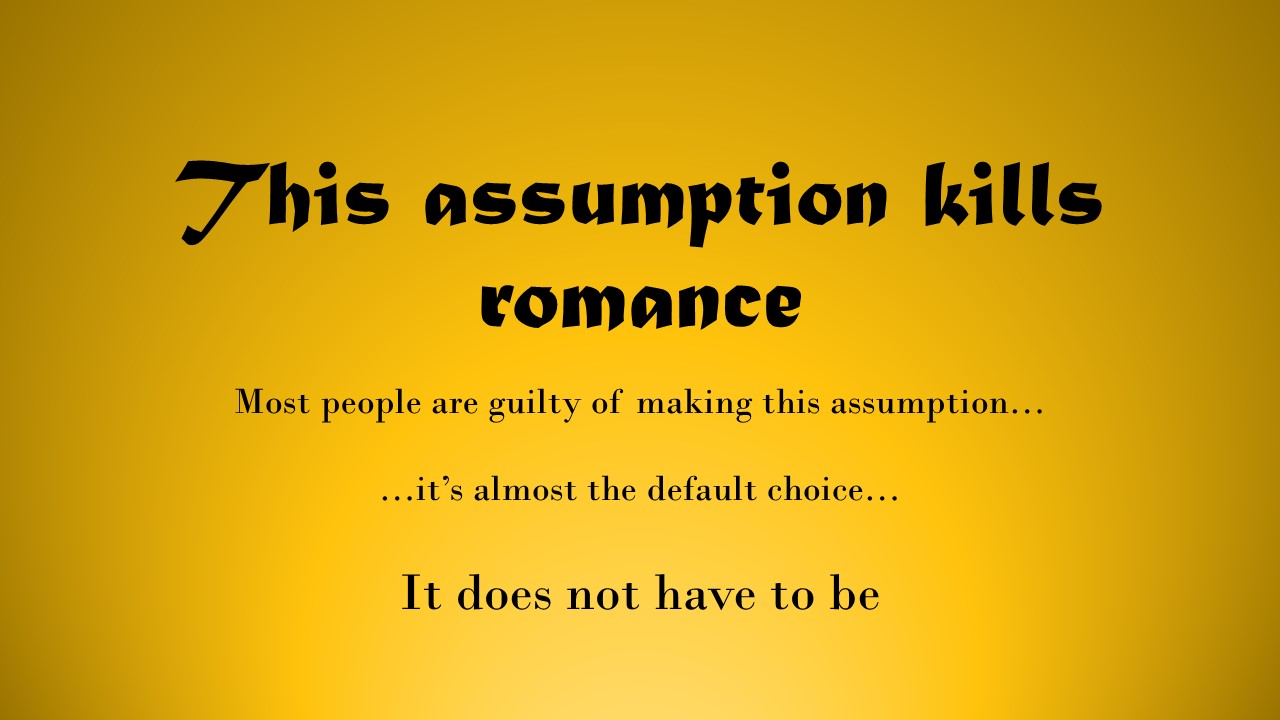 There are a lot of things men and women assume about each other that can be funny. However, there are some assumptions that ruin romance fast. The assumption that the other person will want what we want… destroys a lot of romance before it even gets a chance to start. Let’s start with a story.