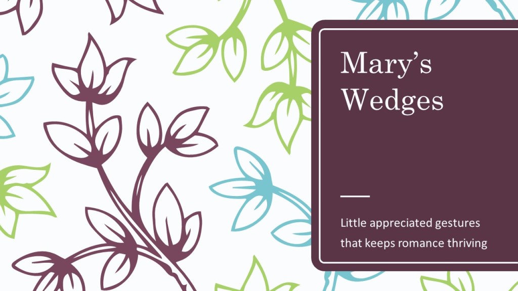 The smile across Mary’s face told the rest of the story. She was already thinking about the end of their date and the fun they would have later. The wedges were just the appetizer, the real fun would be when the lights dimmed, if they even dimmed.